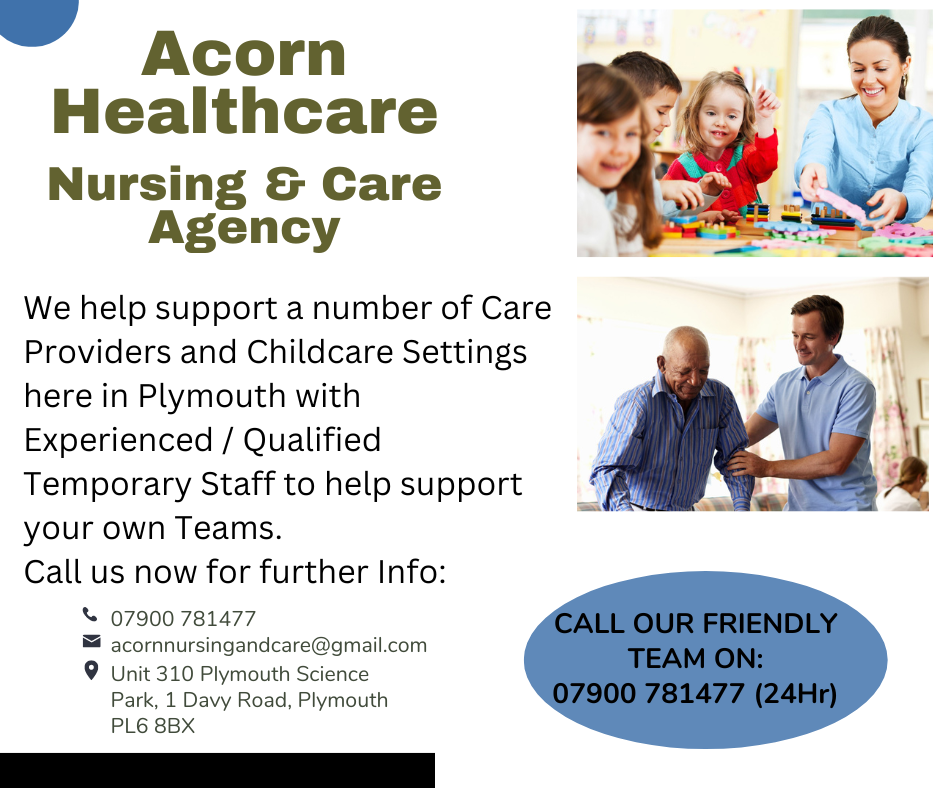 If you want to join our highly respected team, then please either call us on: 07900 781477 or email us a copy of you CV to: acornnursingandcare@gmail.com