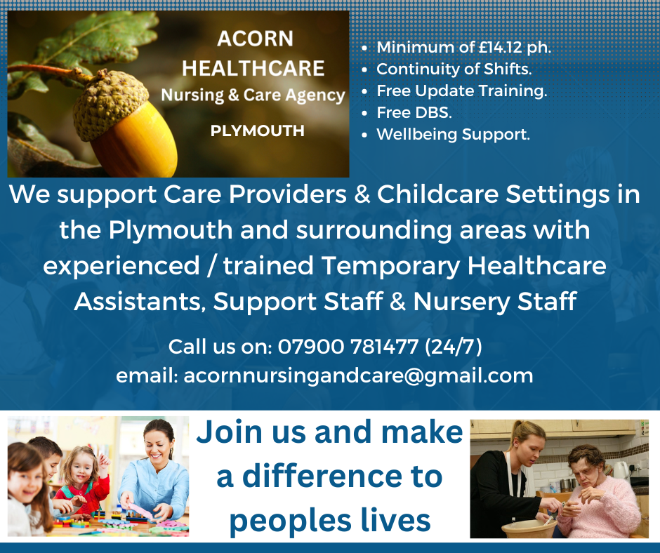 If you want to join our highly respected team, then please either call us on: 07900 781477 or email us a copy of you CV to: acornnursingandcare@gmail.com